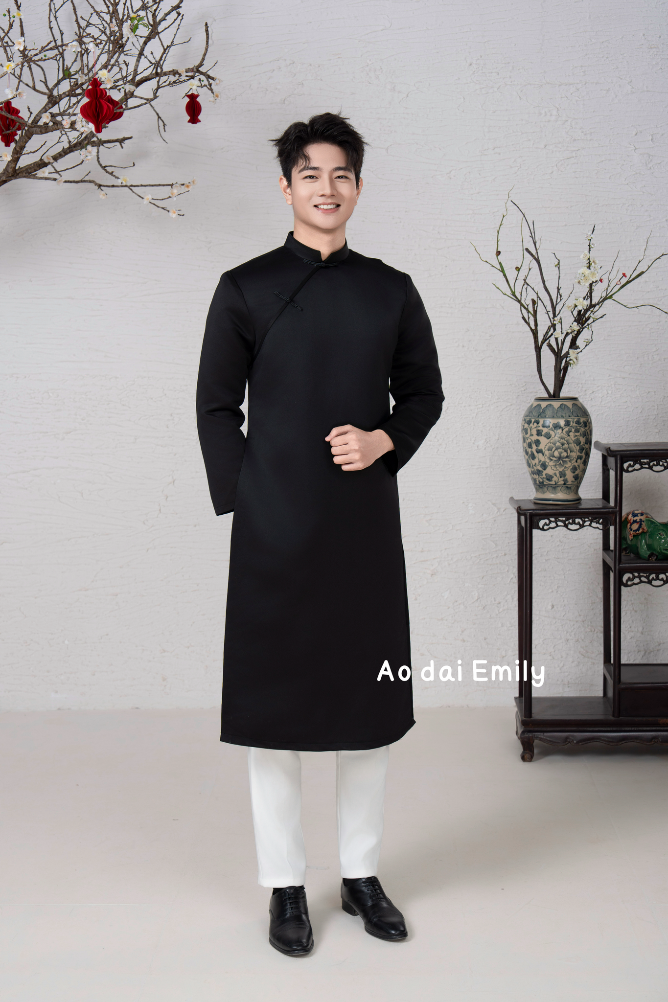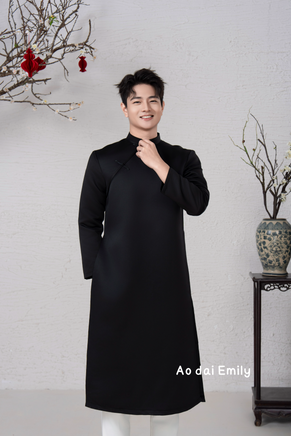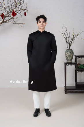 Plain Black Ao dai for men| Taffeta ao dai | Ao dai for men| Slim fit| Ao dai for Groomsman | add 2-3 size to your T shirt size|M-6XL