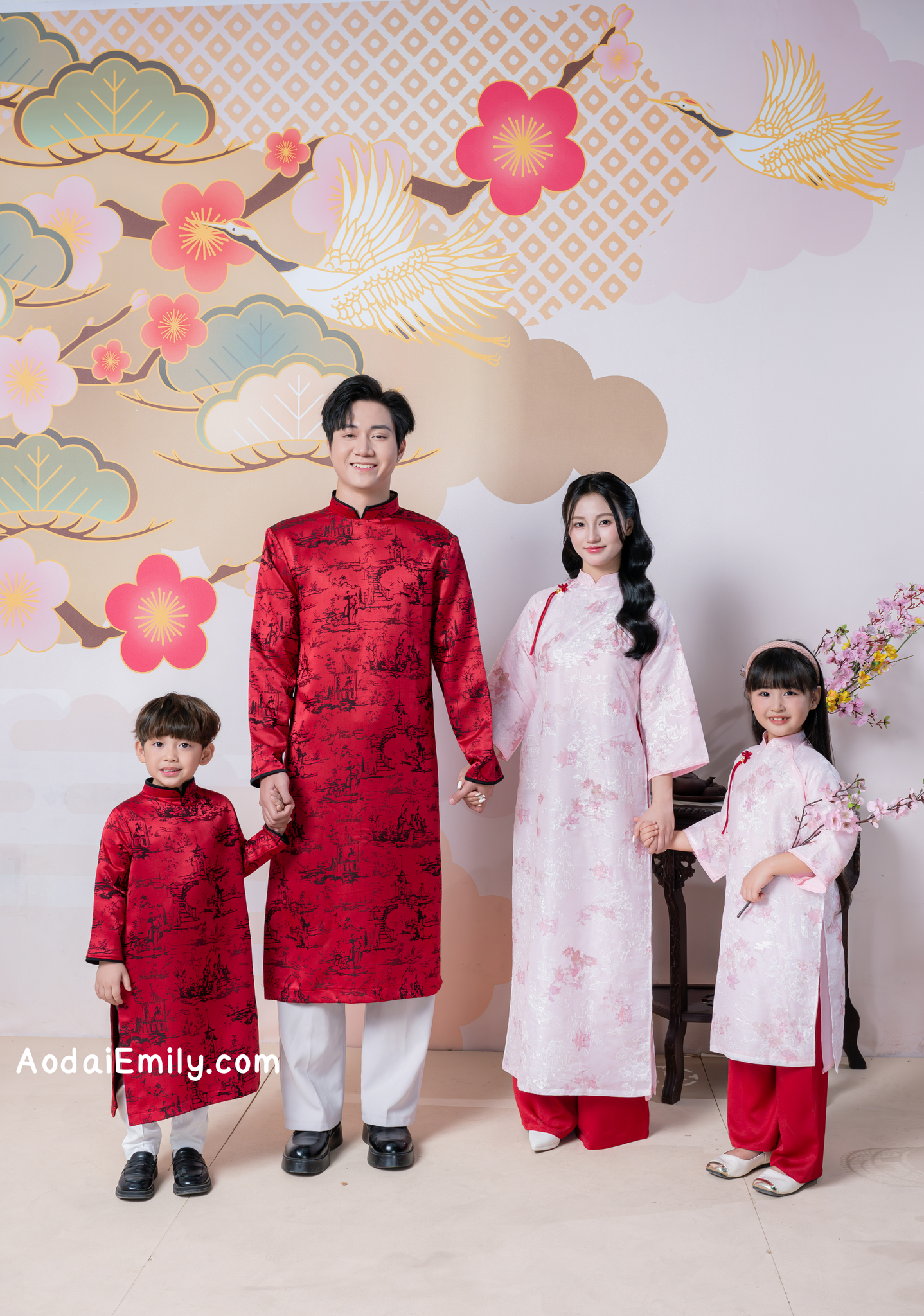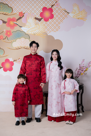 Red/Pink Matching Family Spring Ao Dai Set| Pre-made Ao Dai for Lunar New Year | Ao Dai Gia Dinh Tet| Ao dai for Family