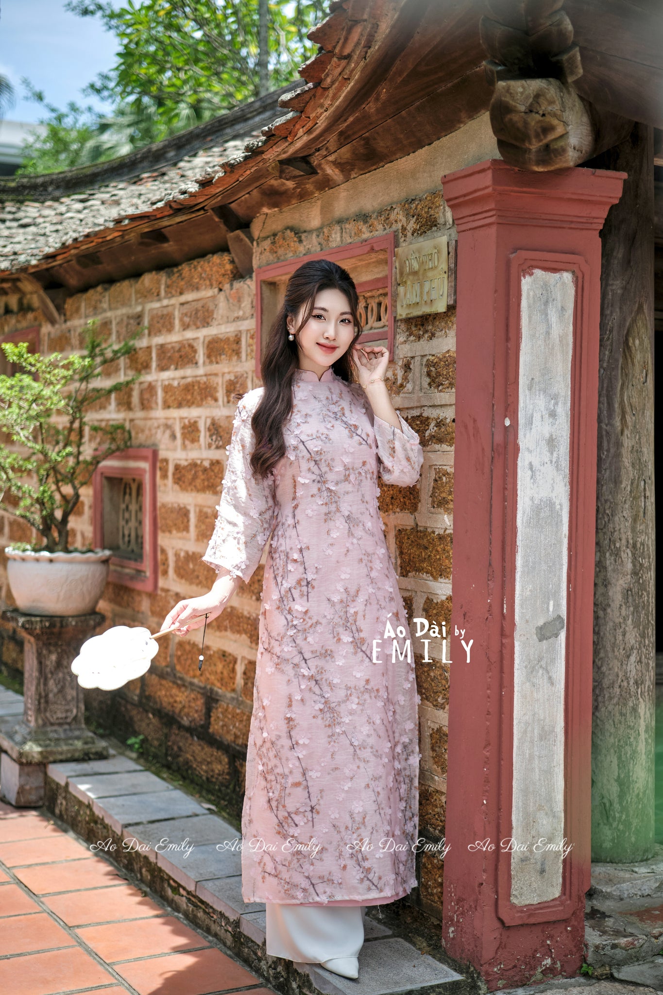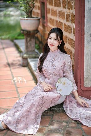 EMERY Pink Ao Dai with Cherry Blossom 3D flower pattern | Loosing style Pre-made Modern Ao Dai| Women Ao Dai |No pants| S-8XL
