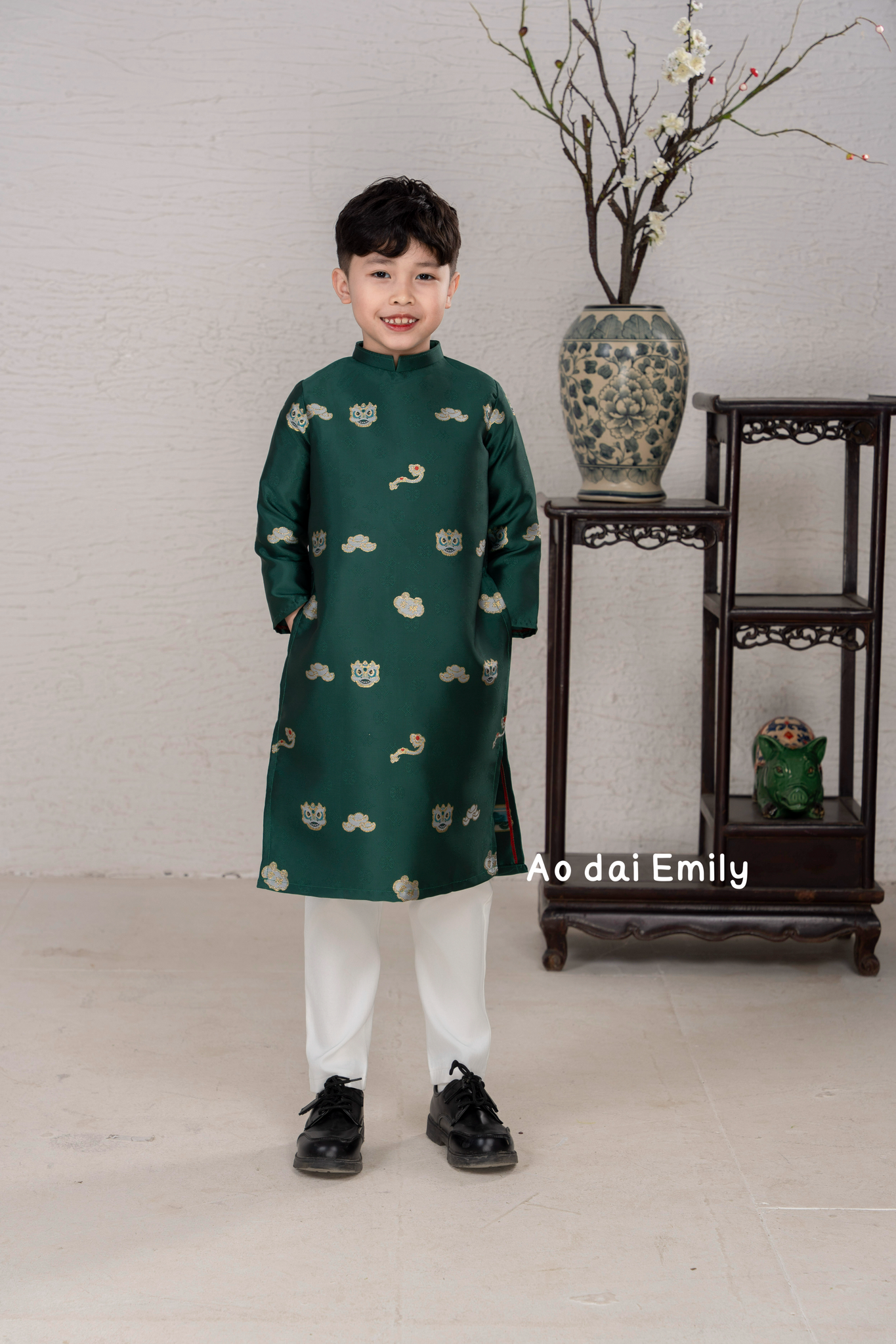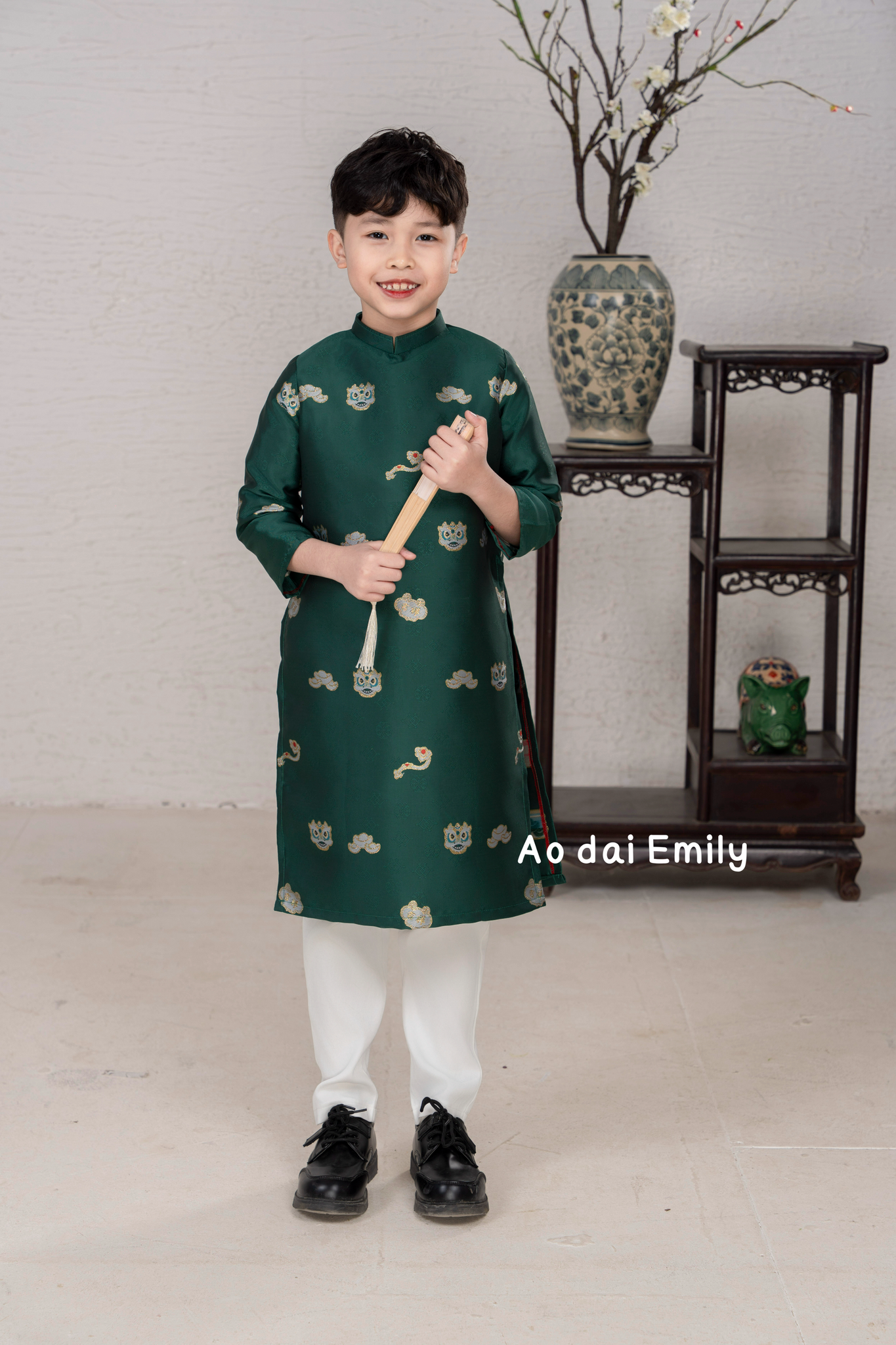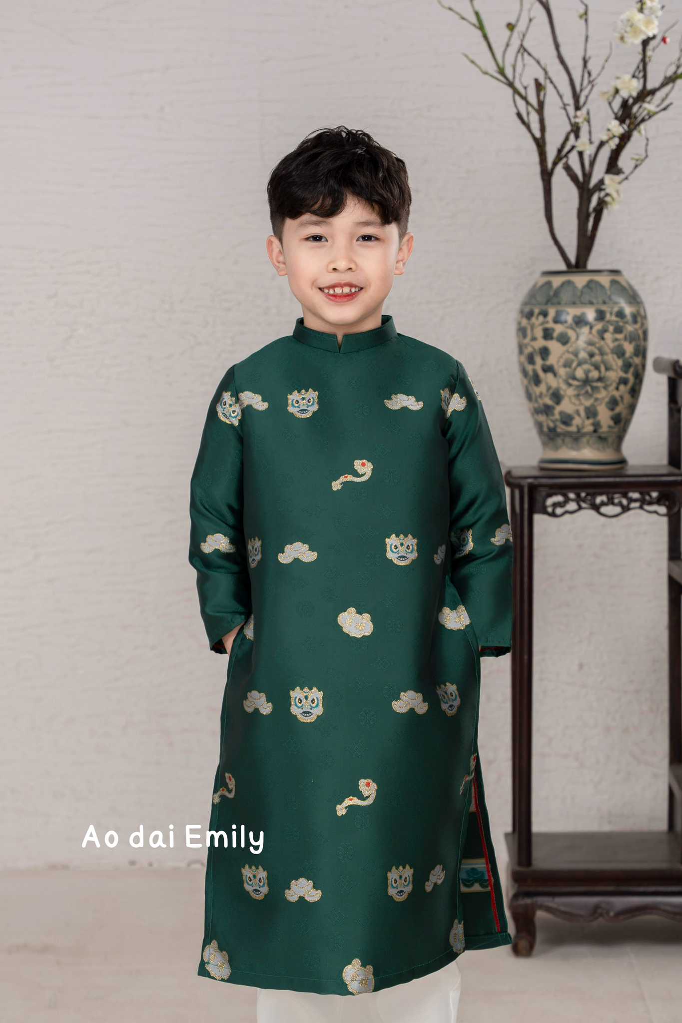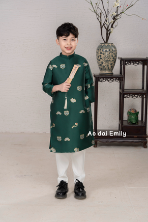 Dark Green Pre made Ao Dai for baby boy with Spring pattern| Lunar New Year Ao dai| Ao Dai Gia Dinh Tet| Ao dai for Family| 1-16
