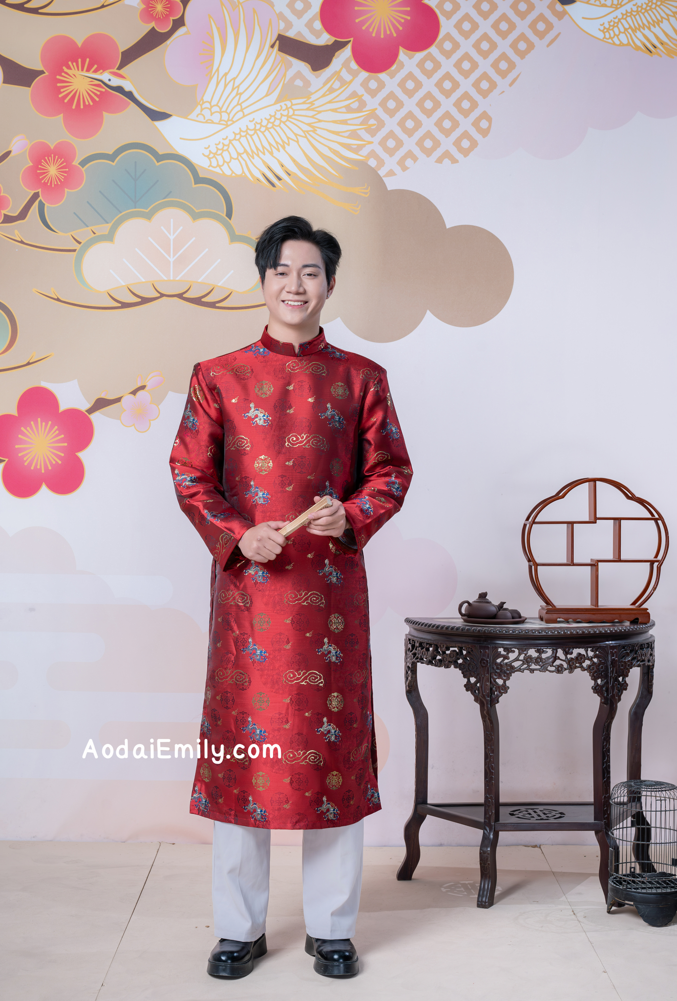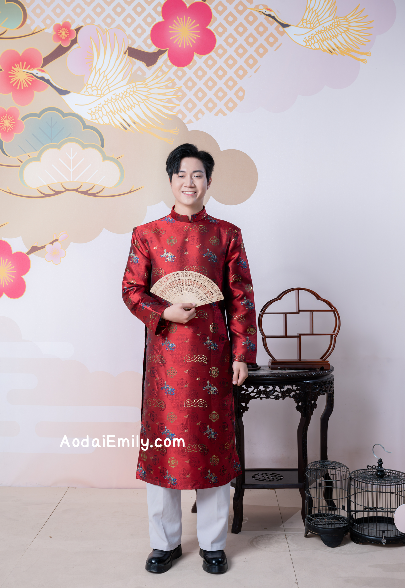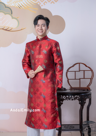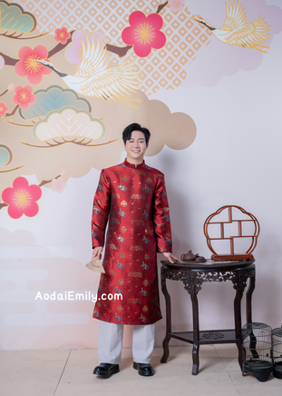 Red Ao dai for men with new year patterns| Pre made ao dai for men| Slim fit| add 2-3 size to your T shirt size| M-6XL