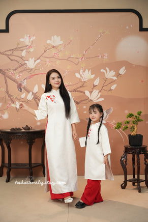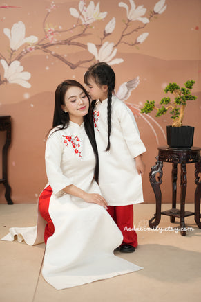 Red/ Cream Embroidered Family Ao Dai Set |Pre-made Ao Dai| Lunar New Year Outfit | Ao Dai Gia Dinh Tet|
