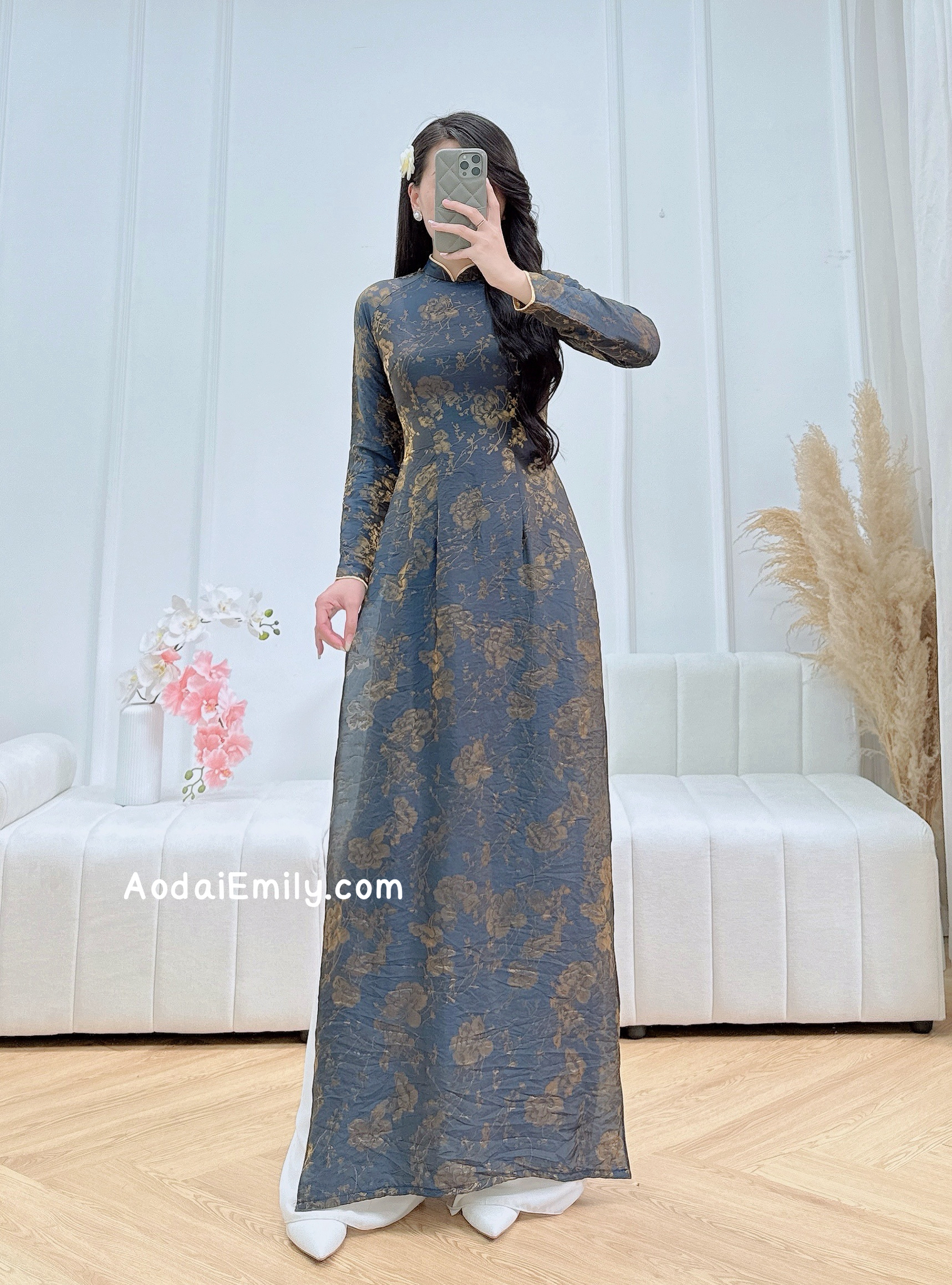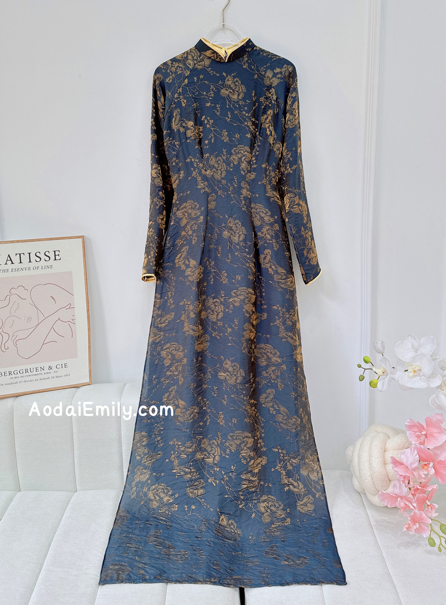 ILA Dark blue/ gold traditional áo dài | Gold patterns flowers| Ao dai women| Vietnamese long dress| No pants| S-4XL