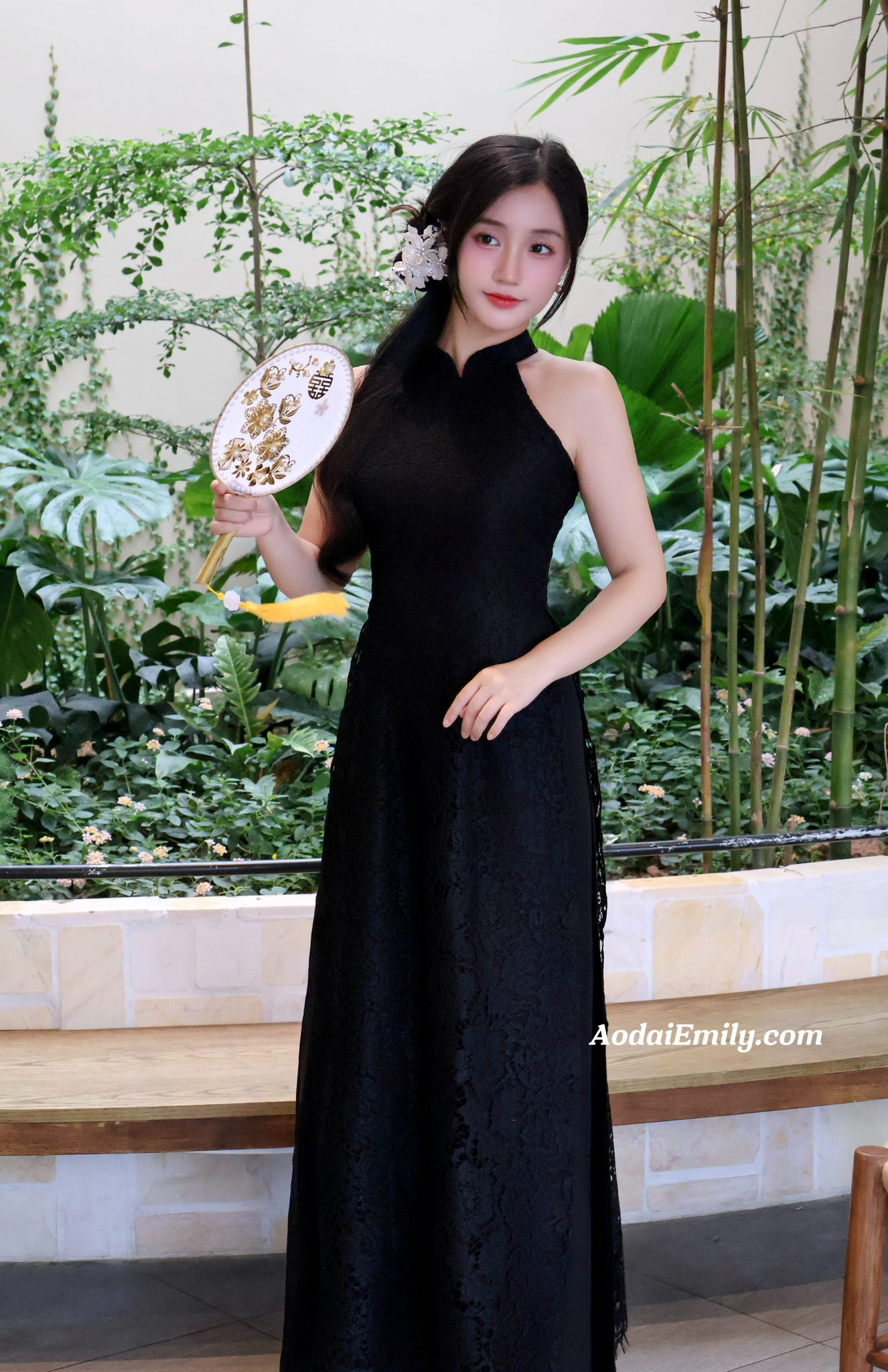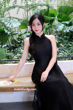 ISABEL Black Sleeveless Lace Pre made ao dai| | Ao dai yếm Women| No pants| Lunar new year Ao dai| S-5XL