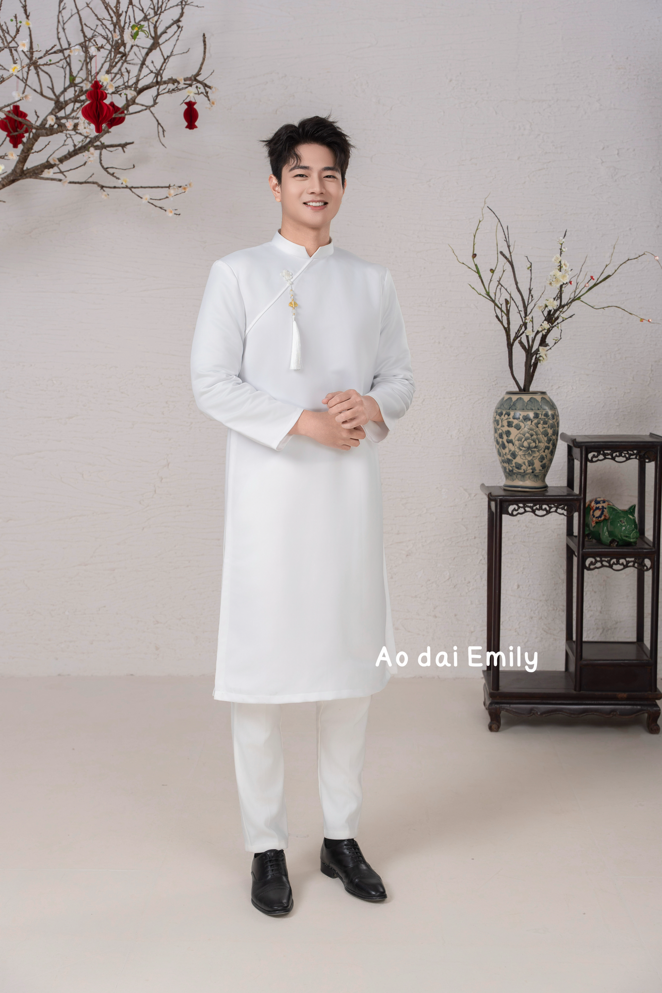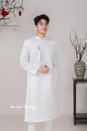 Plain White Ao dai for men|Taffeta ao dai |Basic Ao dai for men| Slim fit|Ao dai for Groomsman|add 2-3 size to your Tshirt size| M-4XL