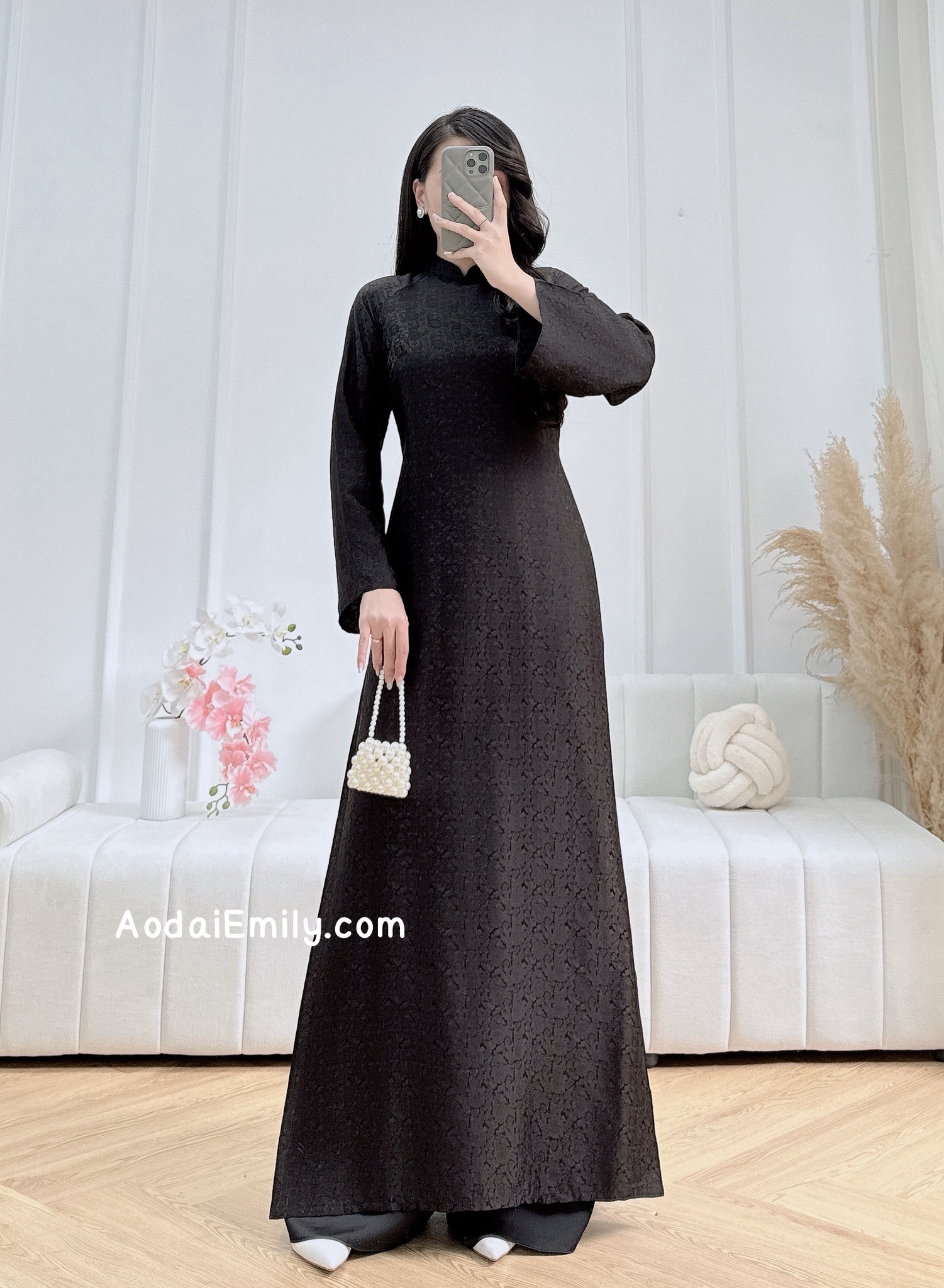 KELSEY Black Mulberry silk ao dai | Loosing style|Ao Lua Ha Dong| Ao dai for special events| Pre made Vietnamese long dress| No pants| S-3XL
