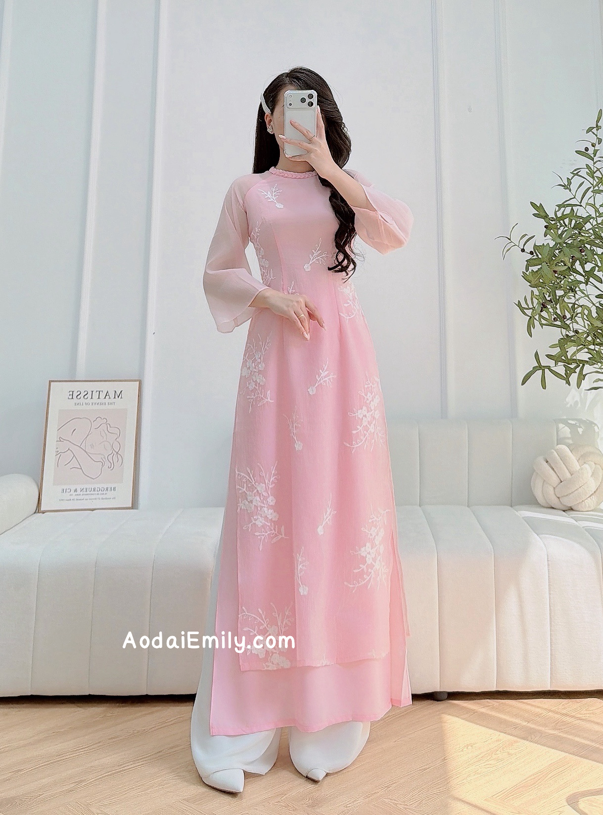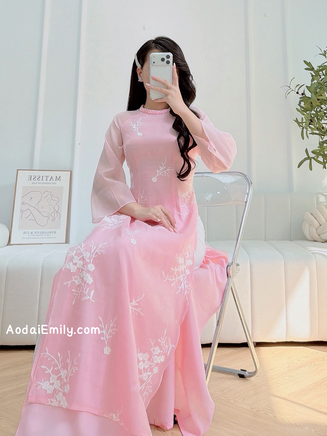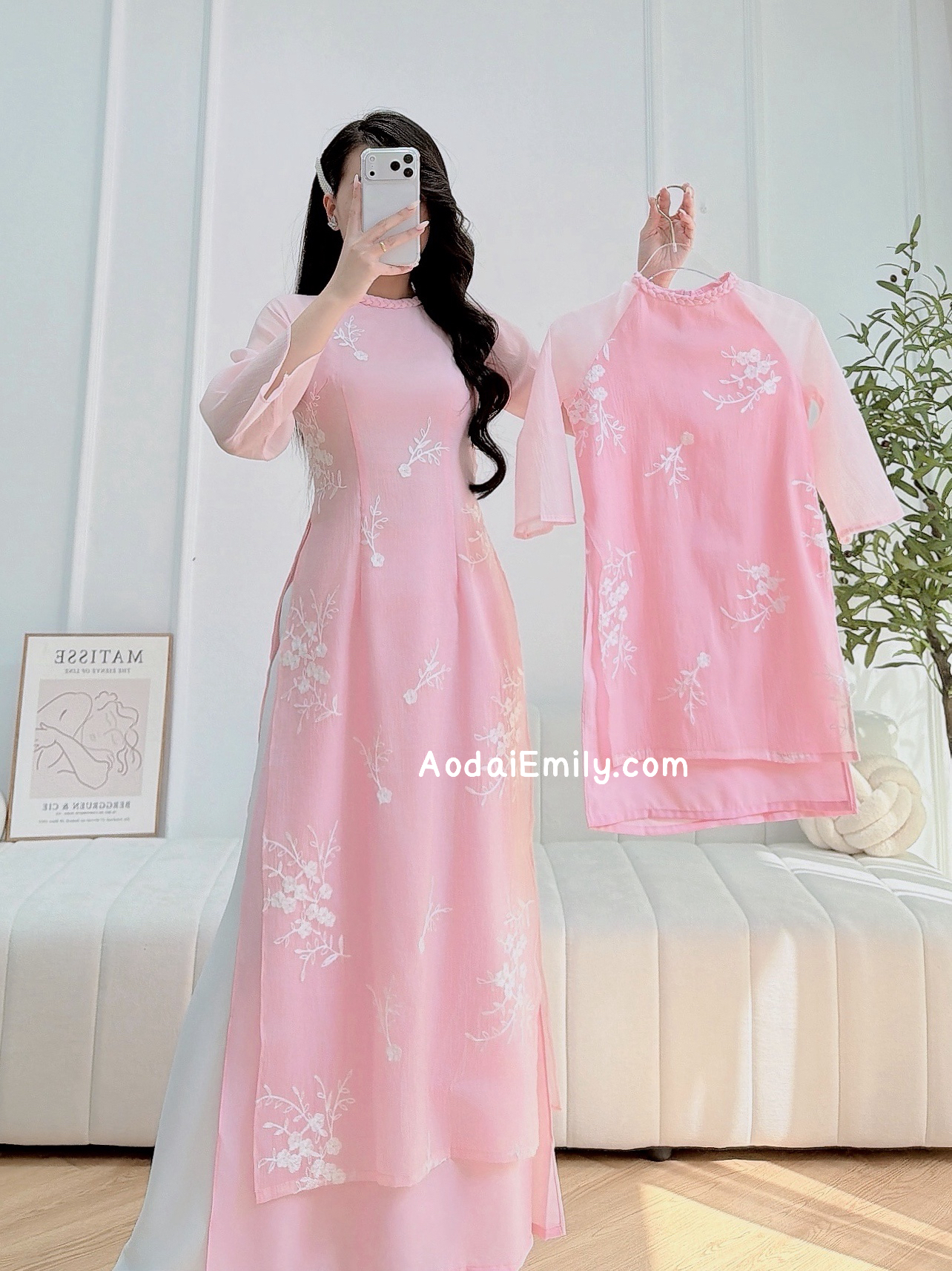 Pink Matching Mom & Girl Ao Dai with Embroidery patterns| Ao Dai Lunar New Year 2026| With white pants|
