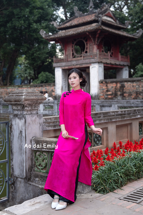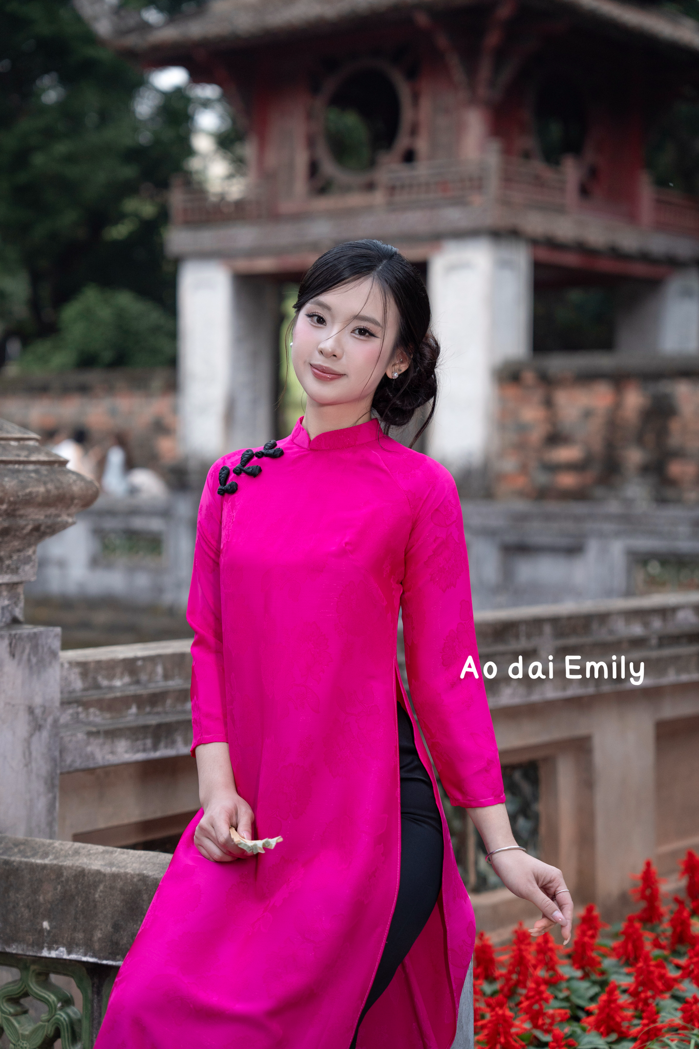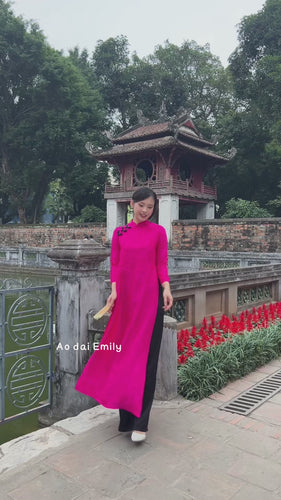 Modern Hot pink/ Black Loosing style ao dai with flowers pattern| With black pants| Ao dai Cach tan| Trendy Ao dai| S-6XL| Chrysanthemum