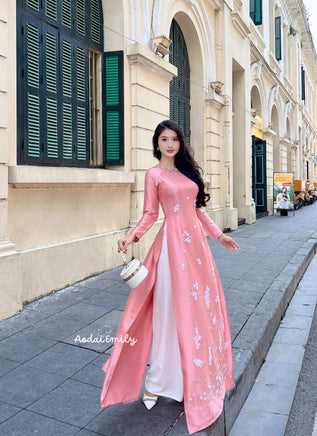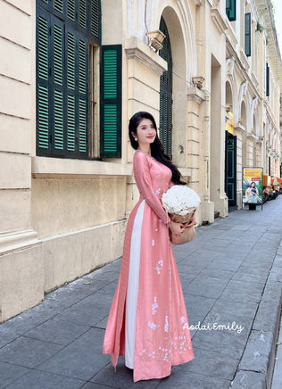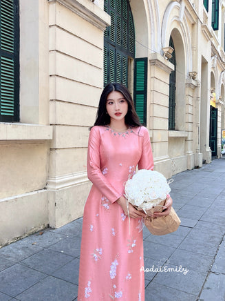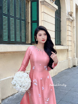 ELISE 3D flowers with hand beaded crystals| Pre made Vietnamese long dress| Ao dài Việt| Ao dai Bridal No pants| S-4XL