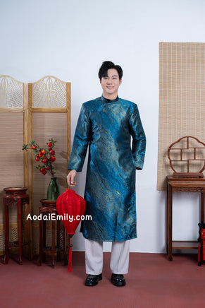 NOAH Dark Blue/ Gold Ao dai for men| | Pre made ao dai for men| Slim fit| add 2-3 size to your T shirt size| M-6XL