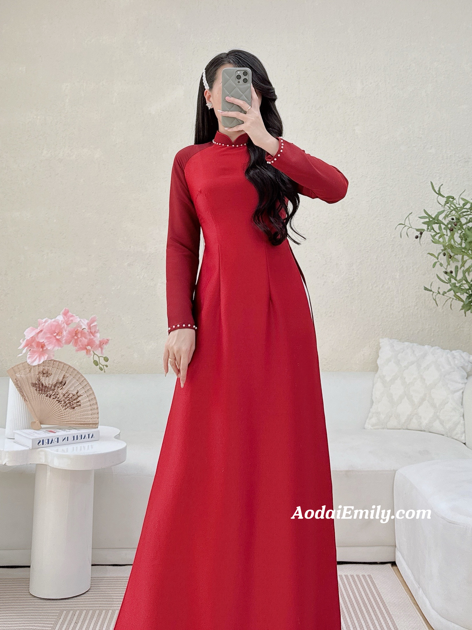 ROYALTY Red/Burgundy ao dai with simple pearls designs
