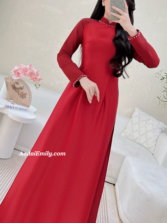 ROYALTY Red/Burgundy ao dai with simple pearls designs| áo dài Vietnam| Ao dai women| uniform ao dai| No pants| |S-6XL