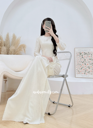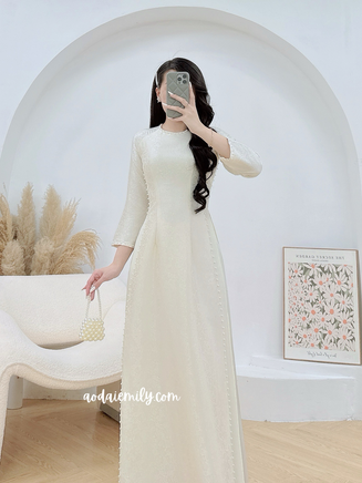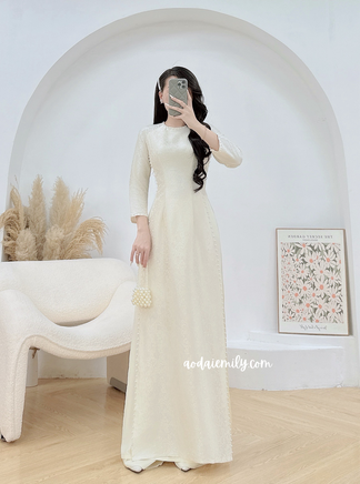 SCOTTIE Double layers Cream Gam with pearls| Pre made ao dai Vietnam| Women long dress| No pants| Uniform ao dai| S-3XL