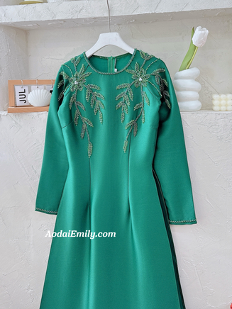 SKYE Plain Dark Green ao dai with hand beading designed crystals | Pre made ao dai| Vietnamese long dress| No pants| S-6XL