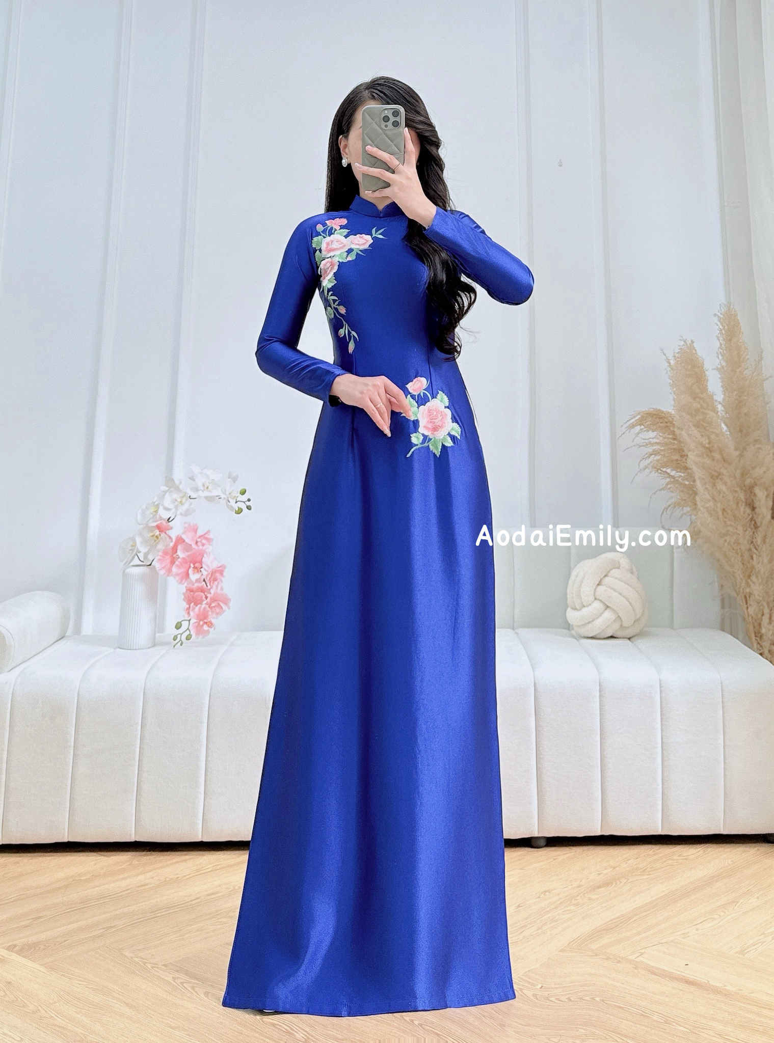 THALIA Blue embroidery traditional ao dai | áo dài lụa thêu hoa| Vietnamese long dress| Ao dai Vietnam| Valentino silk| No pants| S-3XL