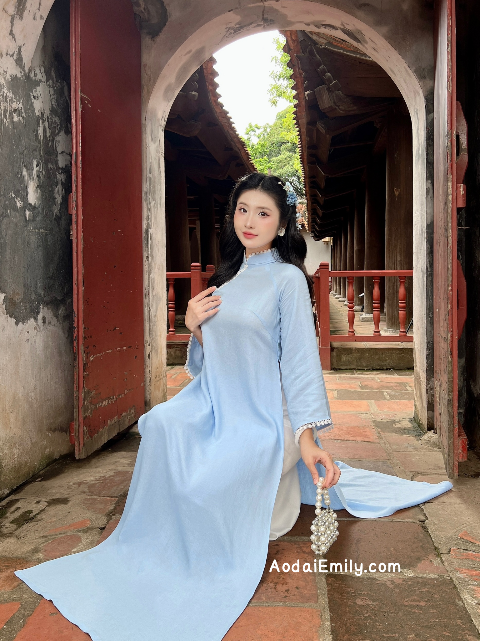 VIOLETA Loosing Blue modern ao dai with simple designs| áo dài cách tân| Ao dai for bridesmaids| | Pre made Ao dai | No pants| S-6XL