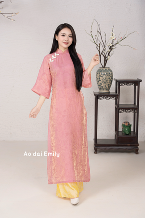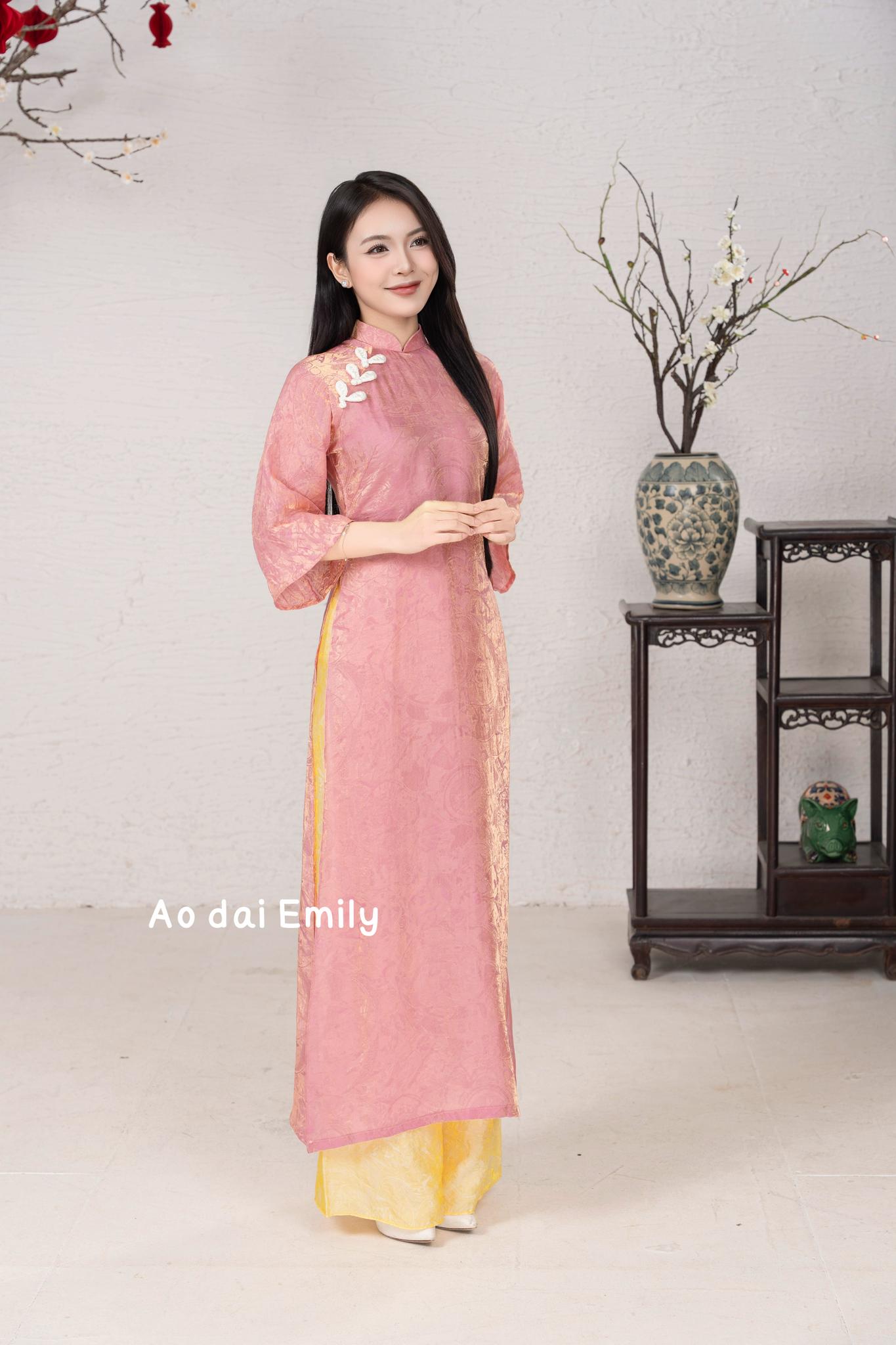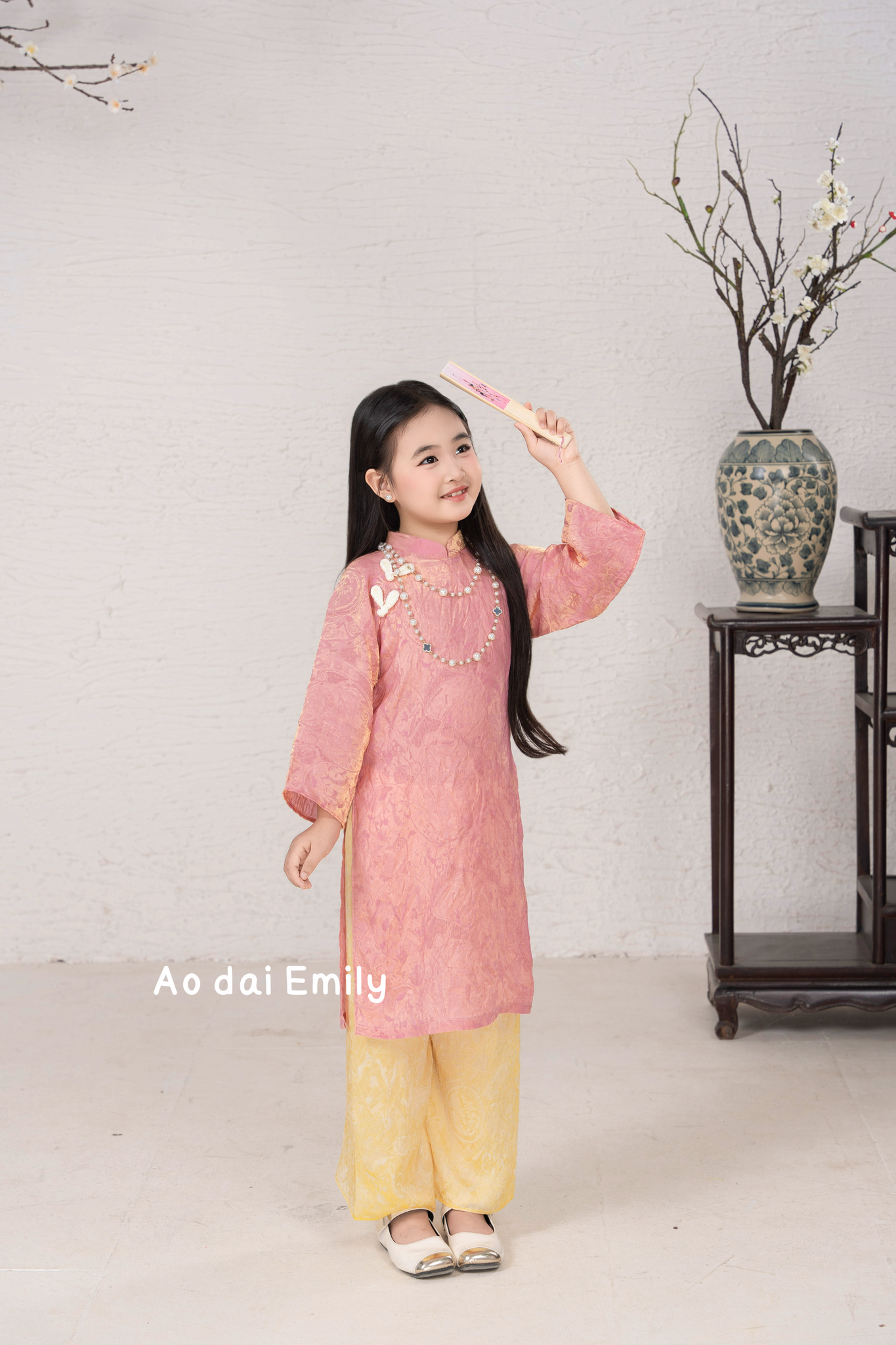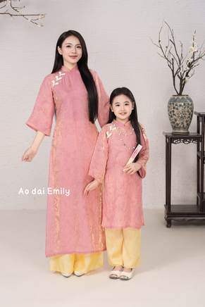 Pink/yellow matching Mom & Girl Ao Dai with button| Ao Dai Lunar New Year 2026| With pants| MC2P01